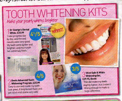 Love Magazine have reviewed our Dr George teeth whitening kits in their 20-26 of June issue. The kits were given 4 1/2 out of 5 and were recommended as the winner and best buy out of all the kits they tested. The tester says "I saw progress day by day, and the results were very good. My teeth were lighter and brighter, and my mouth felt extremely fresh".